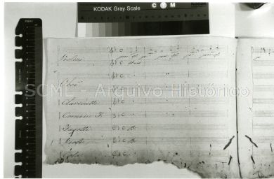 Ao longo do reverso encontram-se as seguintes inscrições a tinta: "Rolo 46; n.º 34; Proc. Rest.; ano: séc. XIX - estreia absoluta em Lx. - 1804; Ópera Camilla - MMS.XIX.012; pág. 204; Antes do restauro".