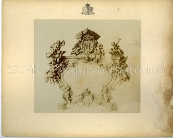 Observa-se uma sacra central, peça pertencente ao espólio da Capela de São João Batista da Igreja de São Roque de Lisboa (n.º de Inv. MPr. 31).