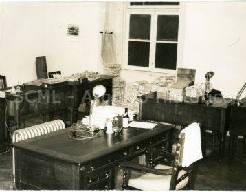 Em segundo plano, junto de uma janela, vislumbra-se documentação empilhada.