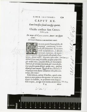 Enquadramento do fólio de um livro impresso, destacando-se uma capitular decorada com um desenho.