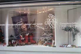 Plano afastado sobre a decoração de Natal da montra, sita numa rua da cidade de Bremen, na Alemanha.