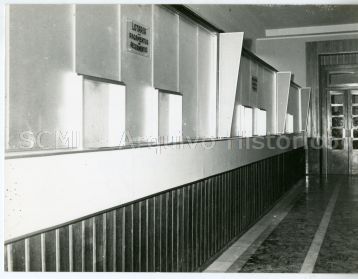 Observa-se, em toda a sua extensão, o balcão destinado a pagamentos e recebimentos da Lotaria da Santa Casa da Misericórdia de Lisboa.