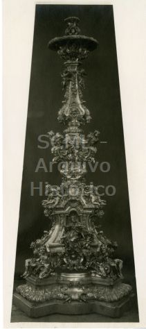 Plano de uma das peças que compõem o par de tocheiros da Misericórdia de Lisboa, em forma de pirâmide triangular, em prata e bronze fundidos, cinzelados e dourados.