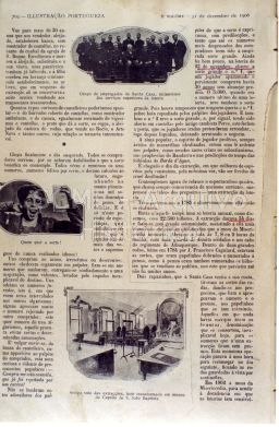 Enquadramento geral da página n.º 709 da revista "Ilustração Portuguesa", n.º 45, publicada em 31 de Dezembro de 1906, no qual se destacam três fotografias com a representação de um cauteleiro, de um grupo de empregados da Santa Casa da Misericórdia de Lisboa e de um plano da antiga sala de extrações, posteriormente transformada em Museu da Capela de São João Batista.