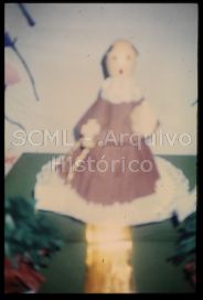 Observa-se uma imagem de Santo António de Lisboa, efetuada em cartão.
