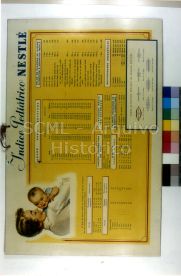 Plano de uma cromolitografia sobre chapa subordinada ao tema "Índice Pediátrico da Nestlé", pertencente ao Serviço de Saúde da Santa Casa da Misericórdia de Lisboa, datada de 1962.