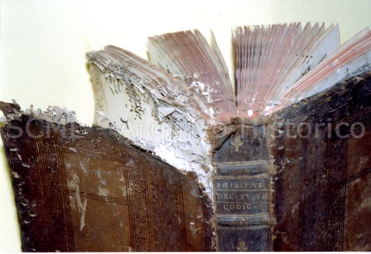 Plano da lombada e da capa de uma obra pertencente à coleção da Biblioteca do Marquês de Alegrete.