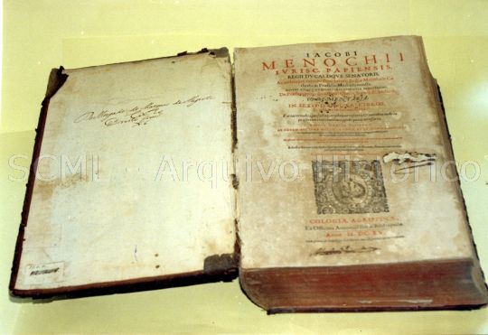 Plano da contra guarda e da folha de rosto da obra com a cota L.A. XVII.0402, pertencente à coleção da Biblioteca do Marquês de Alegrete.