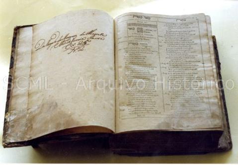Plano da folha de guarda e da folha de rosto de uma encadernação pertencente à coleção da Biblioteca do Marquês de Alegrete.