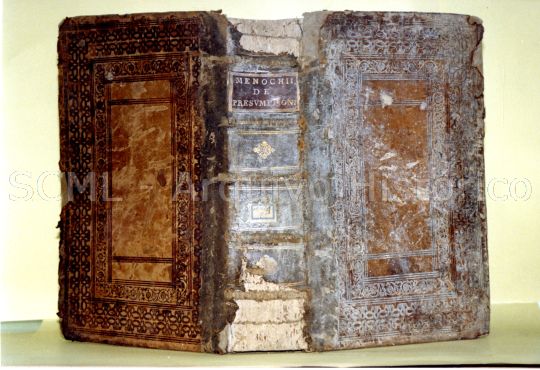 Observa-se falta do revestimento externo da lombada e algumas perfurações na capa.