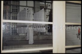 Destaca-se roupa branca a secar, no interior das estruturas envidraçadas.