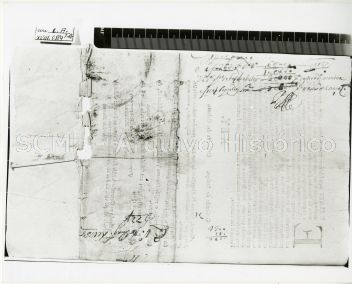 Ao longo do reverso encontram-se as seguintes inscrições a tinta: "Rolo 3; Negativo 19; cota: L.A. XVIII. 0804_9; página 4; em mau estado".