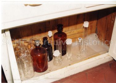 Ao longo do reverso, encontram-se as seguintes inscrições: "Farmácia Central / Sala ? / Frascos vários / Rolo 1_1 / Negativos do Museu".