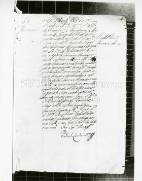 Ao longo do reverso encontram-se as seguintes inscrições a tinta: "Rolo 2; Negativo 5A; CE/EA/CS/001/Lv001; Estampa 26 - Criação de seco - Livro 1, fólio 1".