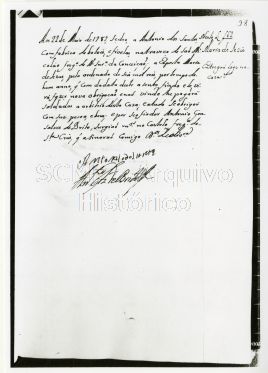 Ao longo do reverso encontram-se as seguintes inscrições a tinta: "Rolo 2; Negativo 24A; SCML/CE/EA/EO/002/Lv.006; Estampa 46 - Termos de criados - Livro 6, fólio 98".