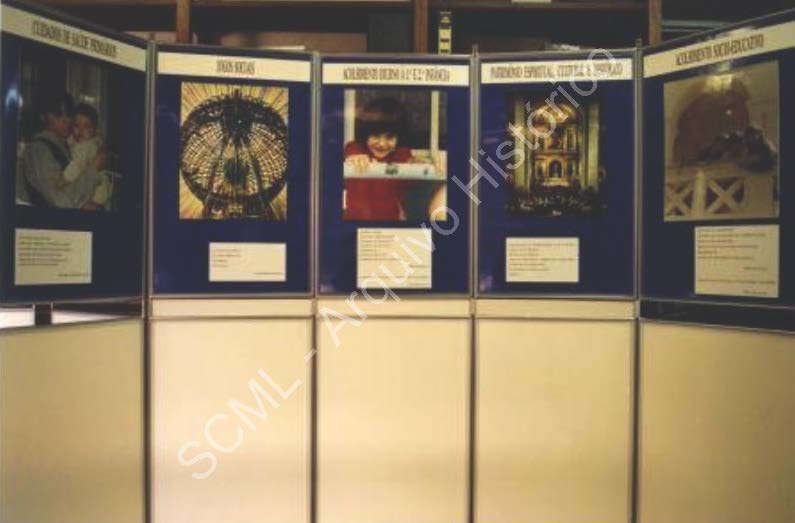 [Plano geral de alguns placards temáticos de uma exposição da Santa Casa da Misericórdia de Lisboa]