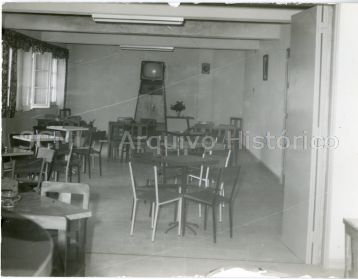 Enquadramento de toda a extensão do espaço, no qual se vislumbram várias mesas e cadeiras.