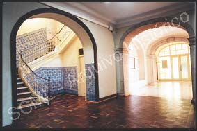 Na parte inferior do reverso encontra-se a seguinte informação impressa: "Arquivo Histórico; Hall de acesso ao Refeitório e outros serviços; (audiovisuais/V. Silva); ano 2000/Sede/Largo de S. Roque".