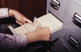 [Pormenor da gaveta de um ficheiro, durante uma consulta de fichas de utilizadores, nas instalações do Arquivo Histórico, sitas na Av. D. Carlos I, em Lisboa]