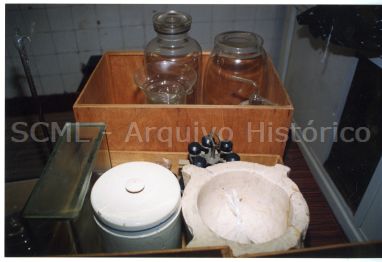 Imagem captada no interior das antigas instalações da Farmácia da Santa Casa da Misericórdia de Lisboa, espaço atualmente ocupado pela zona de depósitos do Arquivo Histórico, sito no Largo Trindade Coelho, ao Chiado.