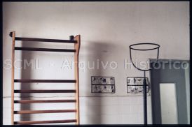 [Pormenor de um aparelho de madeira de ginásio num estabelecimento de apoio social não identificado]