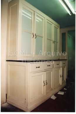 Imagem captada no interior das antigas instalações da Farmácia da Santa Casa da Misericórdia de Lisboa, espaço atualmente ocupado pela zona de depósitos do Arquivo Histórico, sito no Largo Trindade Coelho, ao Chiado.