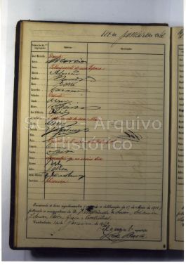 [Pormenor de um fólio do livro de ponto dos empregados da Contadoria do ano de 1910]