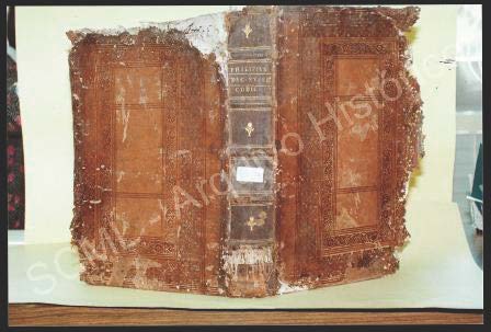 Plano da lombada e da capa de uma obra pertencente à coleção da Biblioteca do Marquês de Alegrete.