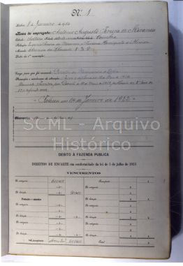 [Pormenor do fólio n.º 1 do livro de ponto dos empregados da Misericórdia de Lisboa, de 1914]