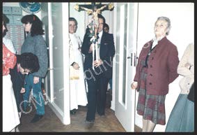 Em segundo plano, encontram-se os colaboradores do serviço, aguardando a entrada da visita pascal.