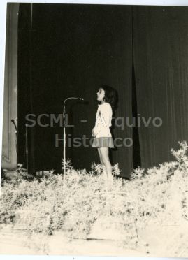 Observa-se uma criança em palco, junto do microfone.