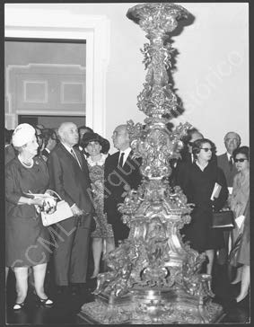 Identificam-se, a contar da esquerda para a direita, Gertrudes Ribeiro da Costa Tomás (1.º), esposa de Américo Deus Rodrigues Tomás (2.º), 13.º Presidente da República Portuguesa e último do Estado Novo, Maria João Varela Sena Magalhães Madeira Rodrigues, conservadora do Museu de São Roque (3.º), António Maria de Mendonça Lino Neto (4.º), provedor da Santa Casa da Misericórdia de Lisboa.