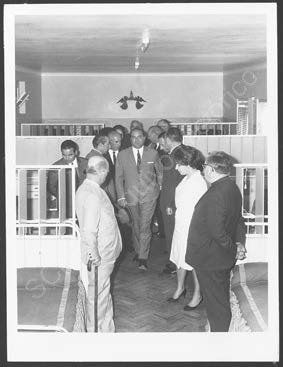 Plano geral de um grupo de indivíduos num dormitório das instalações do Internato do Alvor.