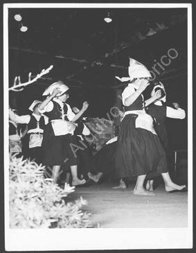 Plano geral de um grupo de crianças a executar uma dança de folclore no pátio das instalações do Internato do Alvor.