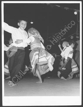 Plano geral de um grupo de crianças a executar uma dança de folclore no pátio das instalações do Internato do Alvor.
