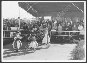 Plano geral de um grupo de crianças a executar uma dança de folclore no pátio das instalações do Internato do Alvor.