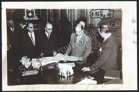 Em 5.º lugar, a contar da esquerda, identifica-se José Guilherme Rato de Melo e Castro, provedor da Santa Casa da Misericórdia de Lisboa, a observar um livro aberto.