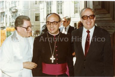 Os retratados dirigem-se para uma sessão solene na Igreja da Santa Casa da Misericórdia de Lisboa, no âmbito das comemorações da Festa da Visitação de Nossa Senhora, no dia 2 de Julho de 1984.