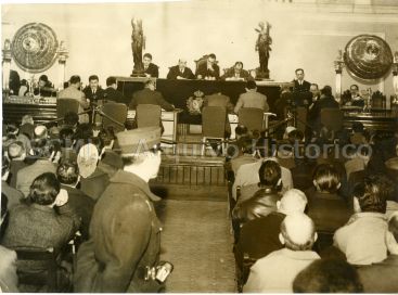 Plano geral da sala de extrações da Lotaria da Misericórdia de Lisboa, no dia do sorteio da "Lotaria de Fim do Ano", em 1965.