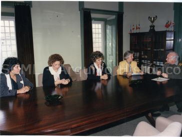 Provas pertencentes a um conjunto de oito fotografias, retratando a assinatura do protocolo de colaboração da Santa Casa e a Escola de Serviço de Saúde Militar, 18.ª deliberação da sessão n.º 41 da Mesa da Santa Casa da Misericórdia de Lisboa de 3 de Novembro de 1987.