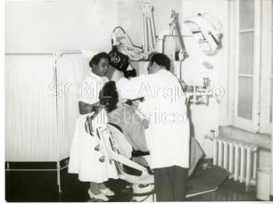 [Retrato de grupo no âmbito de uma consulta de oftalmologia no Dispensário Policlínico Central]