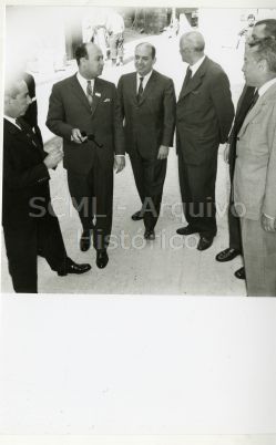 Identificam-se, da esquerda para a direita, João José Gonçalves Proença (2.º), ministro das Corporações e Previdência Social e José Guilherme Rato de Melo e Castro (3.º), provedor da Santa Casa.