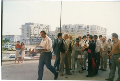 Observam-se vários indivíduos, junto a um parque de estacionamento da zona residencial denominada bairro da PRODAC (Associação de Produtividade na Auto Construção).