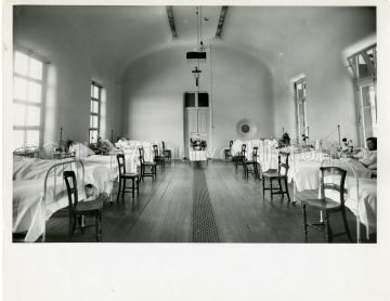 Observam-se três utentes deitadas em camas e várias camas vazias.