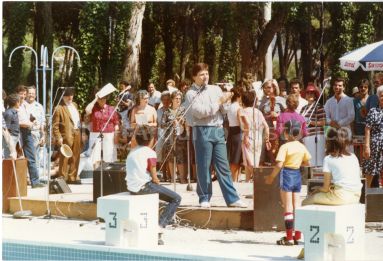 [Retrato de Herman José em atuação, no âmbito das comemorações do dia da Misericórdia, em 1984]