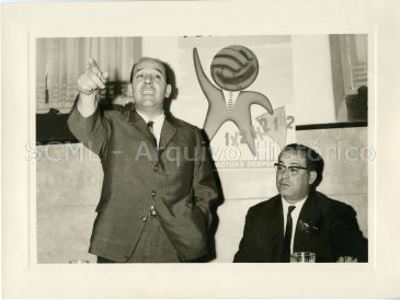[Retrato de José Guilherme Rato de Melo e Castro discursando no âmbito do lançamento do Totobola em Portugal]