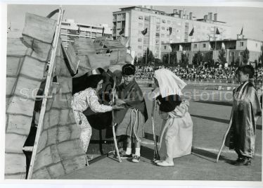 [Retrato de um grupo de crianças a atuar nas comemorações do aniversário da Santa Casa, no Estádio 1.º de Maio, em Lisboa]