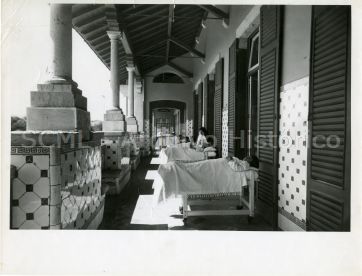 Observam-se várias utentes acamadas, numa varanda do edifício, a respirar o ar do mar.