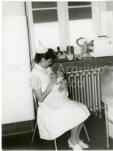 [Retrato de uma enfermeira alimentando uma criança no Hospital Infantil de São Roque]