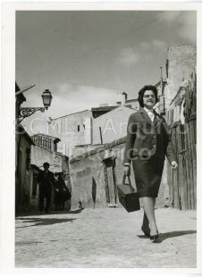 [Retrato de uma enfermeira da Misericórdia de Lisboa a caminhar para o domicílio de um utente]